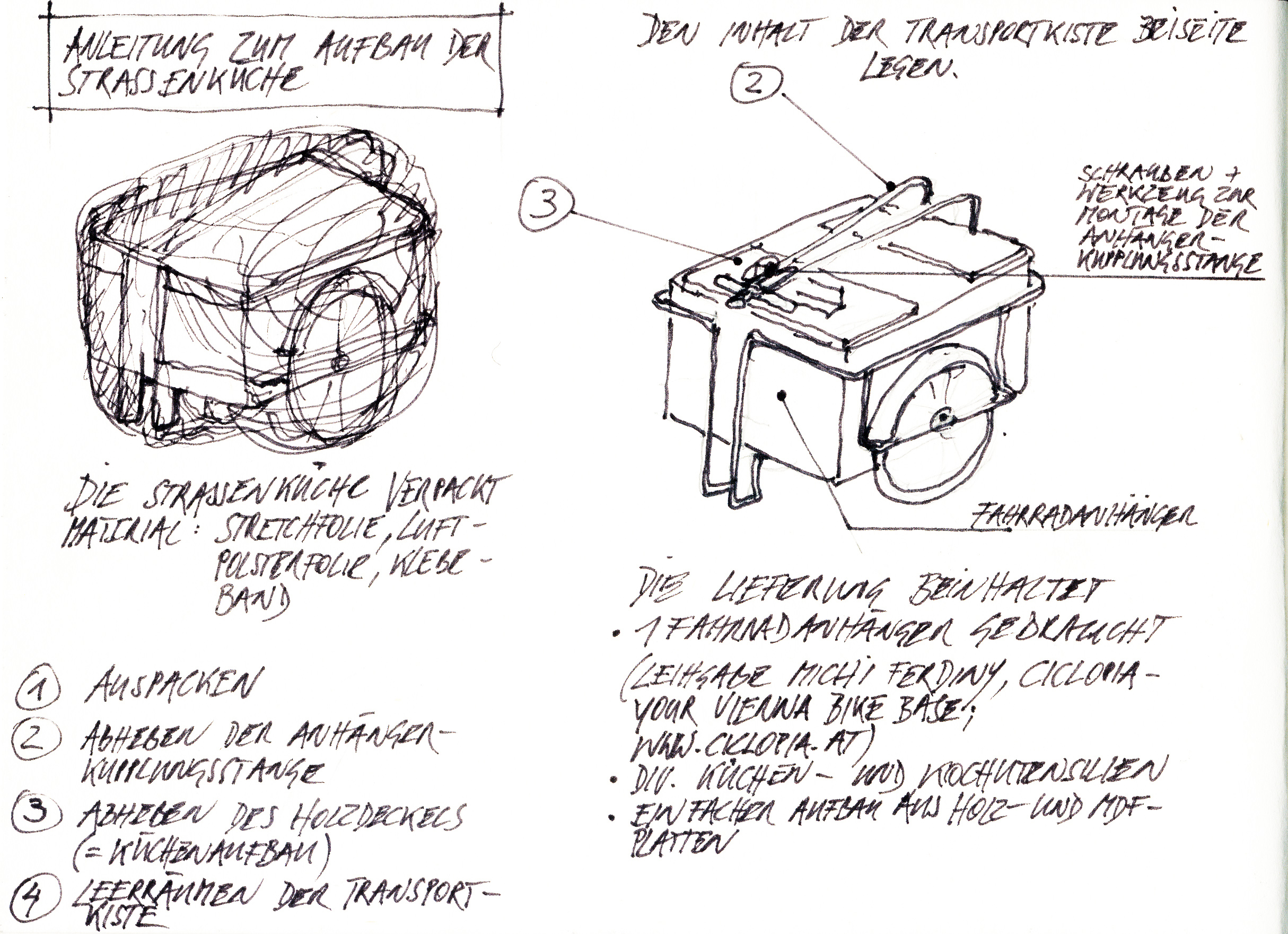 Soho in Ottakring entsendet als Schutzherrin Boten in die Stadt, taucht speziell und punktuell auf und macht Appetit auf mehr (Kunst). Dabei ist die mobile Küche ein Gate in zwei Richtungen; das Publikum aus Soho, das sich auf Schnitzeljagd nach dem Leckerbissen macht und so die Stadt erobert, auf der einen und die zufälligen Kunden, die den Appertizer genießen und so nach Soho einsteigen, auf der anderen Seite. Die Straßenküche finanziert sich selbst, der Erfolg jedoch ist unabhängig vom Umsatz. Die mobile Küche bringt eine ersehnte Abwechslung zu Bigmac, Kebab und Co uns ist als permanente Intervention denkbar.